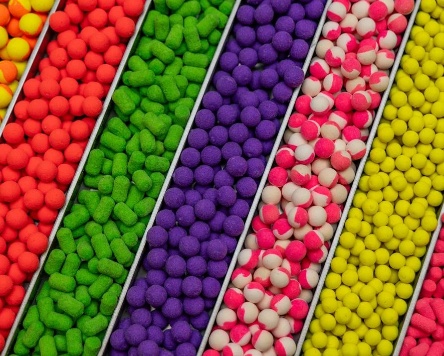 Les appâts pour hameçon sont produits par lots de 50 kg pouvant éventuellement être divisés en plusieurs diamètres. De plus, les tailles et couleurs les plus populaires de Pop-up's et d'appâts pour hameçon sont disponibles en stock, sans arôme, dans des sachets de 1 kg. Nous pouvons les aromatiser selon vos préférences.