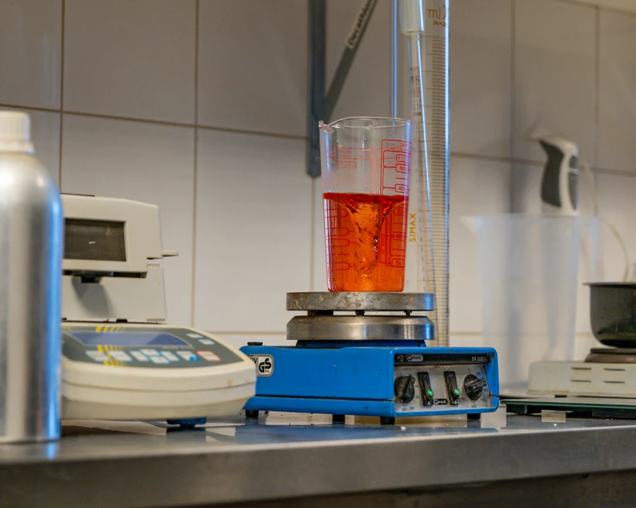 - Contrôle de la qualité des produits dans notre propre laboratoire, par exemple des mesures d'humidité, pour garantir la dureté et la durabilité optimales.